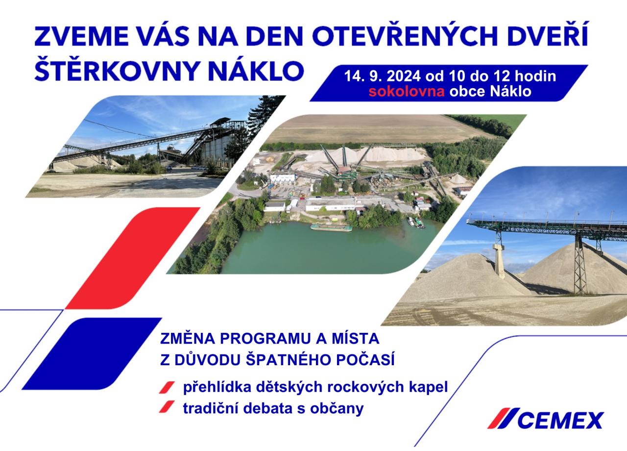 Společnost Cemex zve na akci Den otevřených dveří na štěrkovně v Nákle - změna programu a místa z důvodu špatného počasí!