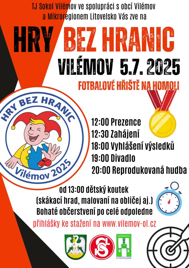 Přihláška je dostupná i na webu obce www.vilemov-ol.cz, uzávěrku přihlášek je 26.5.2025.