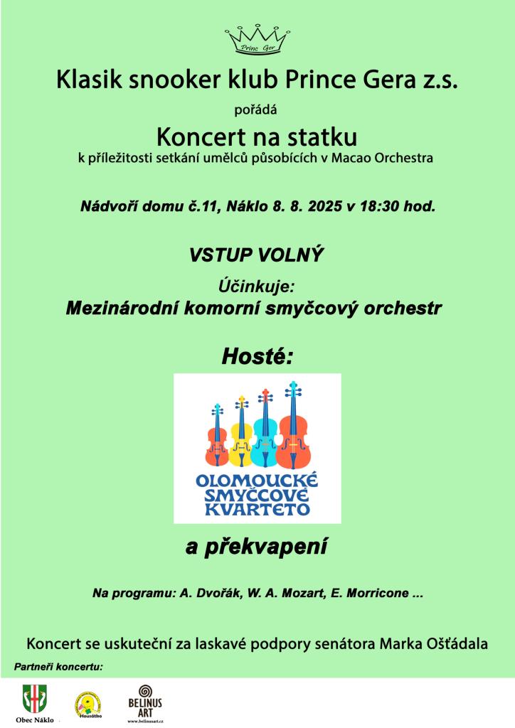 Klasik snooker klub prince Gera zve na Koncert na statku v pátek 8.8.2025 v 18.30 hod.